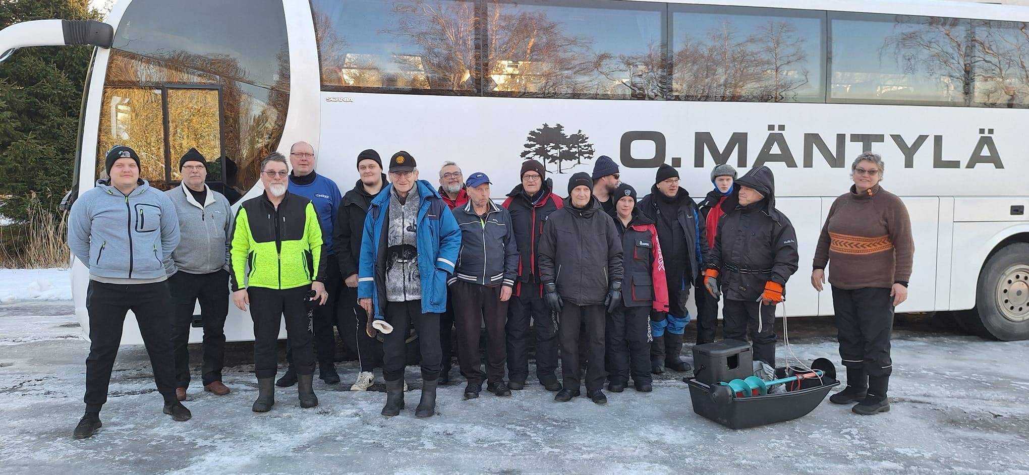 7.3 klo 5.10 lähti bussi liikkeelle Kangasalta. Mukana oli 17 innokasta pilkkijää. Nopea välipysähdys aamukahveelle ja pian oltiinkin sitten perillä Fladanlahdella. Hetken päästä tuli myös toinenkin bussillinen kalastajia samoilta suunnilta. Ja ennestäänkin oli pilkkijöitä jäällä. Nyt oli vahva tunne, että tänään tulee kalaa!