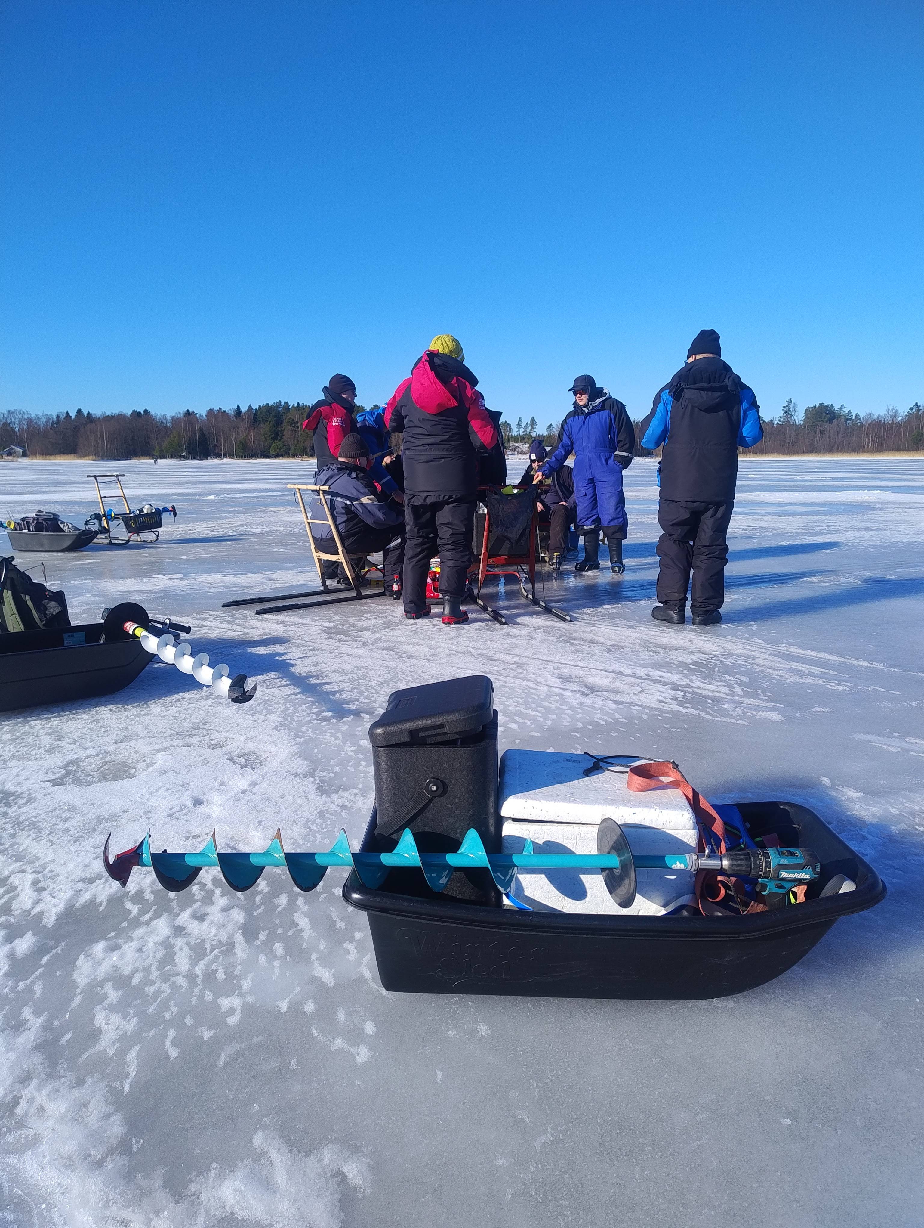 Päivä oli täydellinen, aurinko paistoi eikä tuultakaan juuri ollut. Osa innostui käymään kauempanakin, mutta suurin osa jäi lahdelle. Paljon oli väkeä,mutta iso oli lahtikin. Entäs ne kalat….päivän mittaan oli nopeita syöntihetkiä, osalle ahti antoi ahvenia paremmin osalle ei.